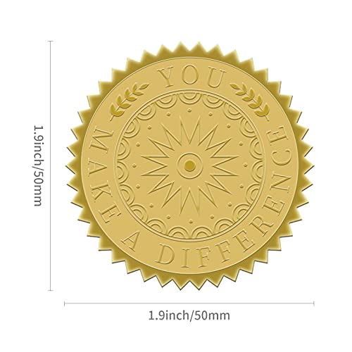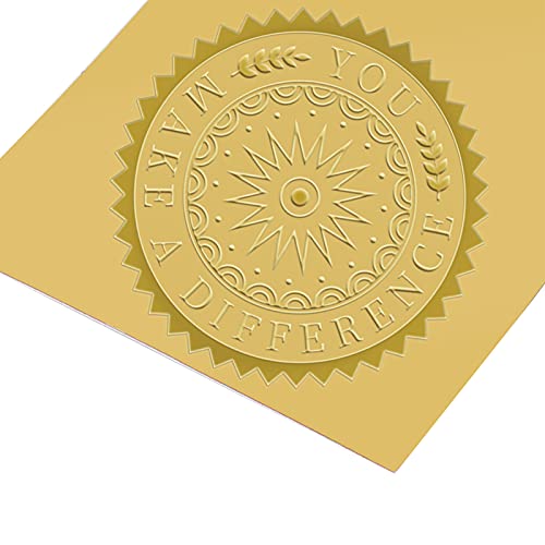 BENECREAT 100 verpakkingen reliëf goud folie stickers (u maakt een verschil) certificaat afdichtingen 5x5cm voor…