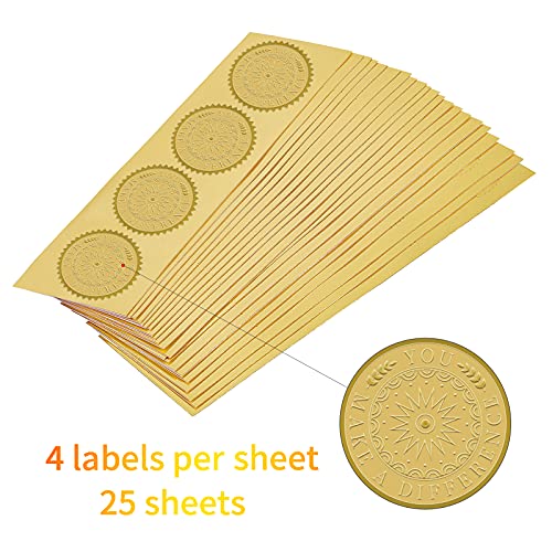 【Pakket bevat: 25 vellen goudfolie stickers, 4 stuks per vel, 100 stuks in totaal. Elke sticker heeft een diameter van 2″/5cm