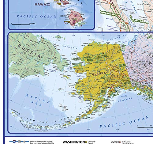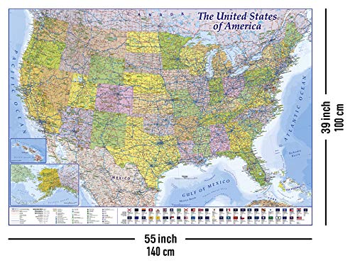 De blikvanger aan elke muur, of het nu op kantoor, in de woonkamer, werkkamer of als leerkaart in de kinderkamer is. Bedek je vakantie en ontdek de meest opwindende plaatsen in de VS. Schaal 1:5.000.000