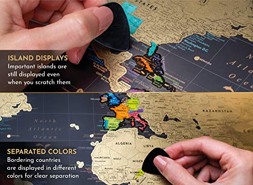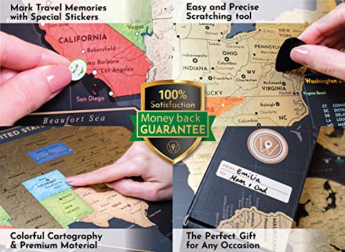 SET VAN TWEE – Inclusief een pakket van 2 reizigerskaarten: één wereldkaart (24×17 inch) plus een USA Map (18×13 inch). Kras de goudfolie van elk land af en laat u verklaren? Heb bezocht om een kleurrijke poster van uw reiservaringen te onthullen!