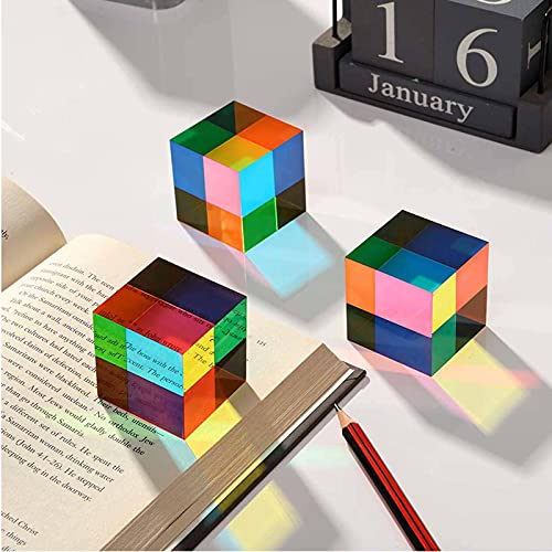 ZOVCO CMY Color Cube Crystal Glass Cube Prism, Multi-Color Optisch Glas Prism, RGB Dispersie Prisma, Multi-Color Desktop…