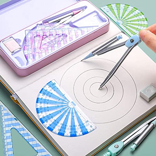 Math Geometry Kit Set Groen/Blauw/Roze Multifunctionele Kompas Ruler Sets Professionele Tekening Gereedschap 7pcs School…