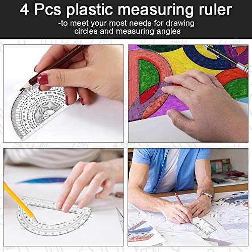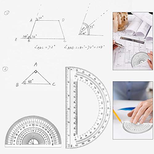 Specification: RMENOOR 4 stuks geometrieset kunststof geometrieset doorzichtige wiskunde geometry set met 2 in 1 gradenboog, 15 cm…