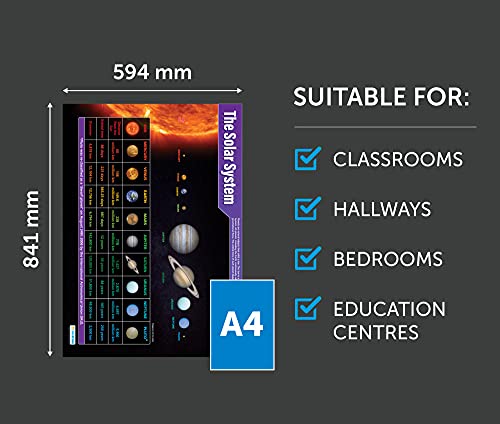 Kennis: onze educatieve schoolposters zijn kleurrijk, prachtig geïllustreerd en bevatten een enorme hoeveelheid waardevolle informatie. Deze Science poster is speciaal ontworpen om studenten te helpen een groter begrip te krijgen van de planeten die deel uitmaken van het zonnestelsel. De wandgrafiek is een geweldige bron voor scholen, klaslokalen, wetenschapsleeraren, studenten, docenten, thuisschool ouders en thuisschool kinderen