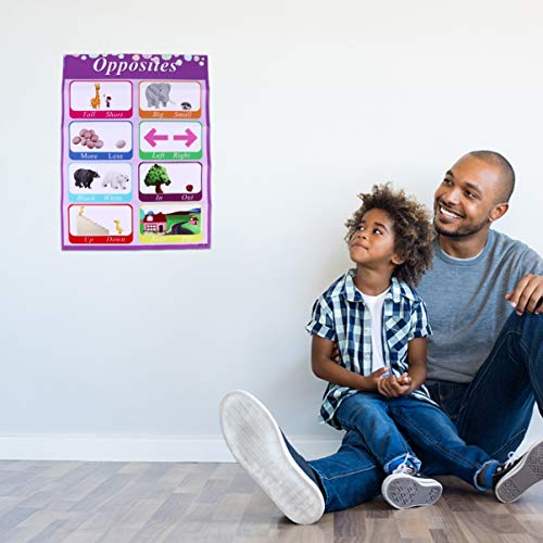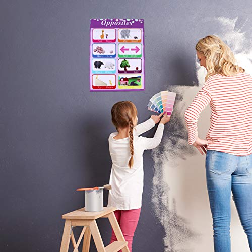 Gemaakt van hoogwaardig drukpapier, canvas en PP-lijmmateriaal, deze educatieve poster is duurzaam en praktisch, met Engelse antoniemen leerontwerp, geschikt voor thuisschool, kleuterschool, kleuterschool en kleuterschool. Het zal leren vol plezier en boeiend maken voor individuen potentieel.