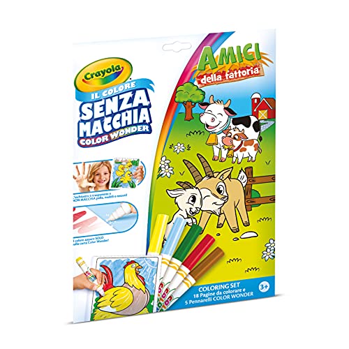 CRAYOLA – Color Wonder, kleurenset met 18 pagina’s om in te kleuren en 5 stiften zonder vlekken, motief boerderij…