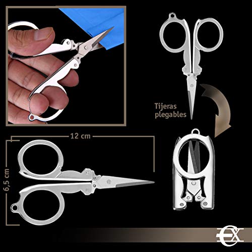 Vouwschaar van verchroomd staal voor naai- of knutselwerk. Schaar die grootte met de helft vermindert, zodat je hem zelfs aan een sleutelhanger kunt dragen. Ideaal voor het snijden van papier, karton, EVA-schuim of karton.