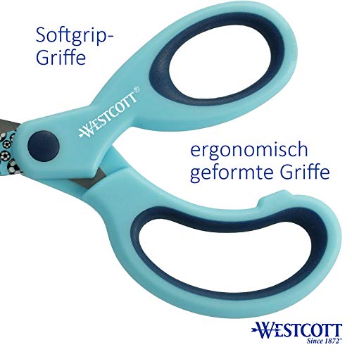 Westcott Softgrip kinderschaar met voetbalmotief, bedrukt, lemmetbescherming, 13 cm, ronde punt, rechtshandigen, blauw…